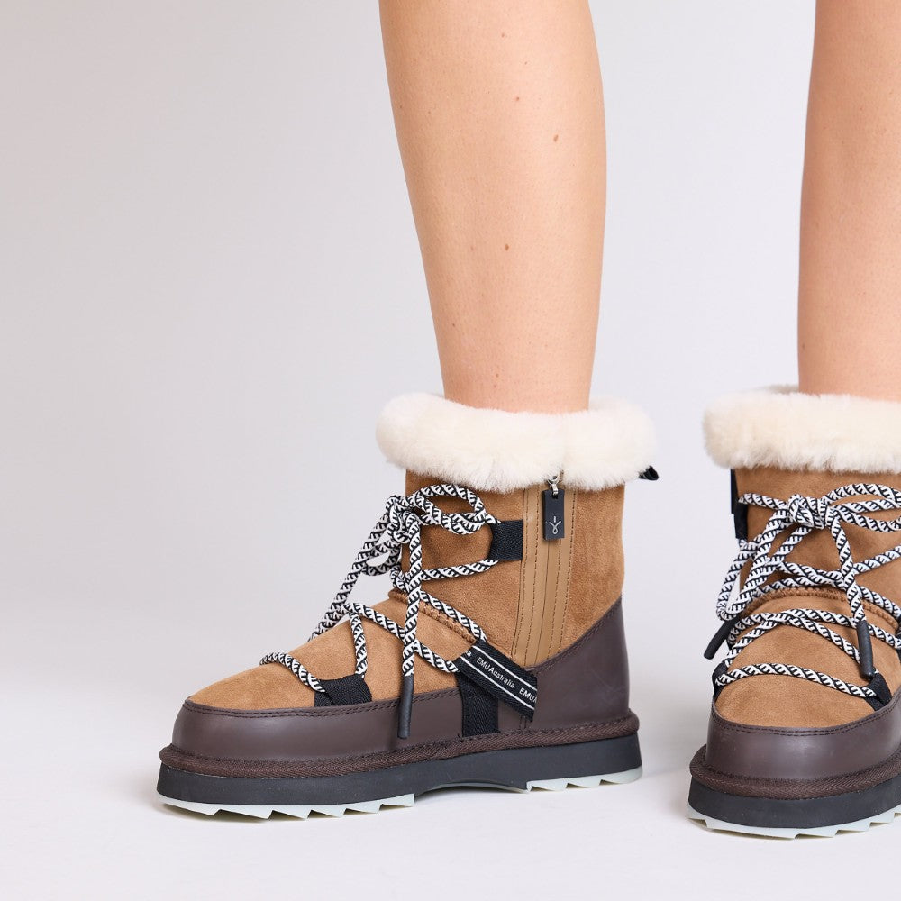 Crafted from premium water-resistant sheepskin, these chestnut boots blend rugged hiking-inspired design with unbeatable warmth and comfort.